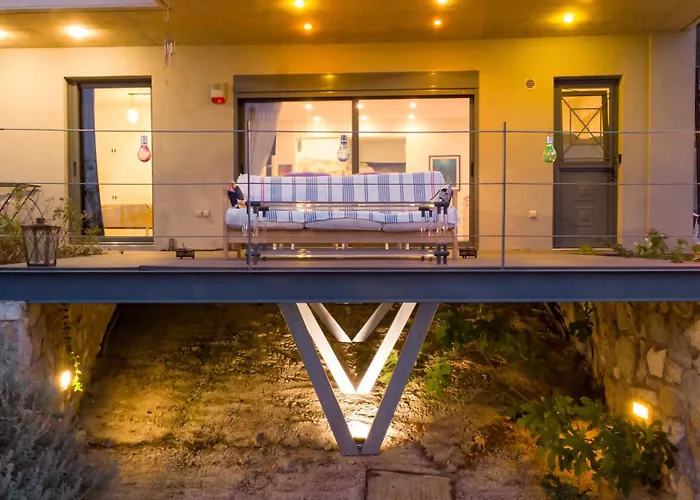 Located a mere 7 minutes' walk from the Kalogerolimano, the beachfront Deck House Villa Pefkali includes a terrace with views of the sea. Offering Wi-Fi, the accommodation is located 3.3 km from Ovrios.